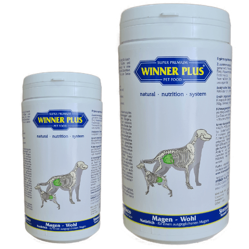De natuurlijke kruiden en mineralen van vulkanische oorsprong zorgen voor een evenwichtige balans in de maag en het darmkanaal. Kan worden gebruikt voor alle rassen, van puppy’s tot oudere honden. Veel honden hebben last van oververzuring van de maag en hebben de neiging om gelig slijm uit te braken, vooral ’s morgens vroeg, nadat ze langere tijd zonder voedsel hebben gezeten. Dit proces wordt meestal voorafgegaan door het eten van grote hoeveelheden gras. De gemalen schors van de Amerikaanse rode iep vormt slijmstoffen die het maagslijmvlies als een beschermende film bedekken en verzachten. Bittere stoffen, looizuur, inuline en slijmstoffen in het centaurie-kruid en gentiaan ondersteunen ook de geïrriteerde maag en bieden verlichting. Essentiële oliën en menthol uit de watermunt hebben ook een positief effect op het maagmilieu.