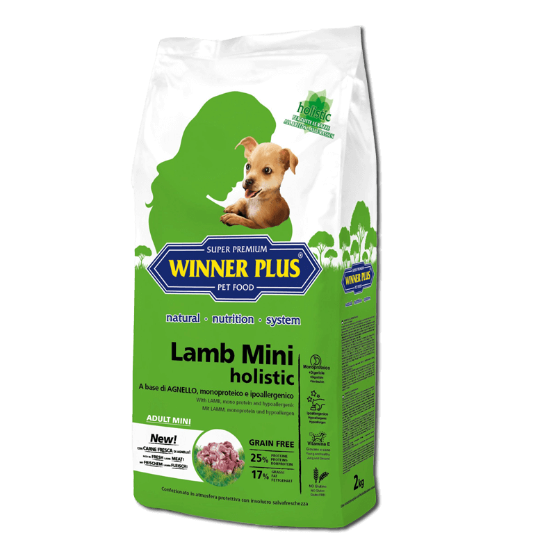 WINNER PLUS HOLISTIC LAMB MINI is een natuurlijke, graan- en glutenvrije complete voeding voor volwassen honden van kleine rassen.